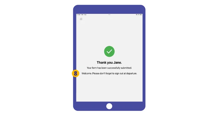 At sign in or sign out, the success message will be shown to the visitor using the Kiosk (8).