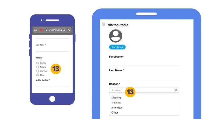 13. When signing in on a phone or at a Kiosk the Drop Down Label will appear, something like this: