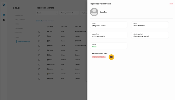 To see whether a Phone App (VPass In) Registered Visitor record has followed the steps in their welcome email and created a Profile, you may click on the listing.