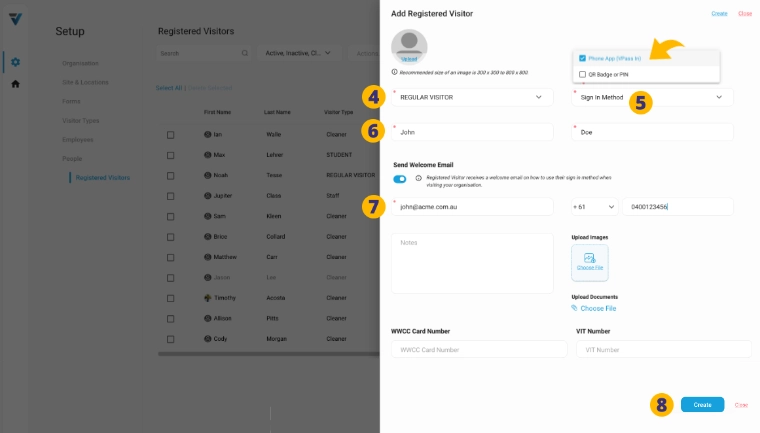 In order to create a single Registered Visitor record for a VPass In App – Phone Sign In…