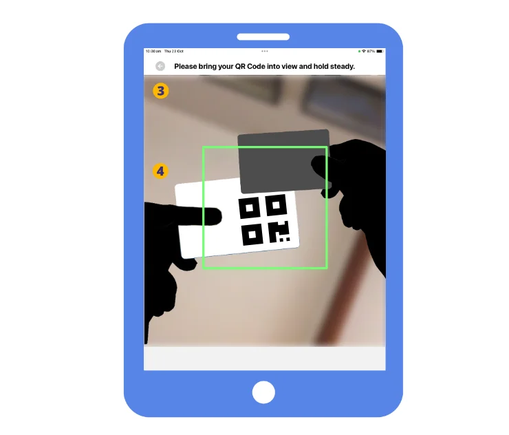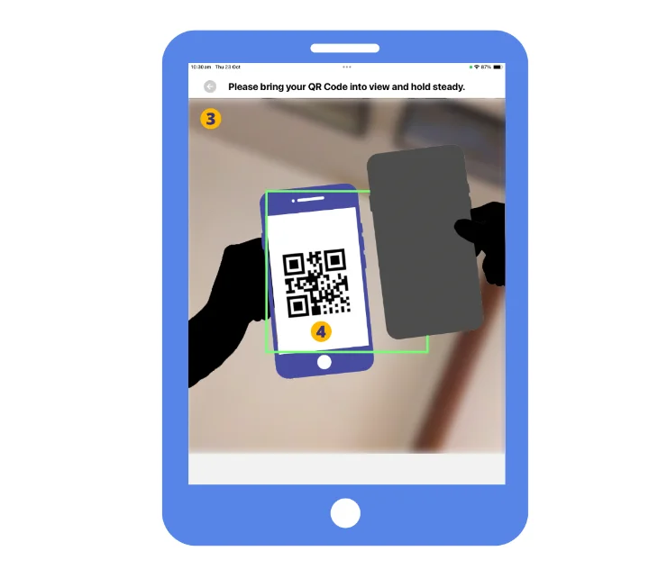 A: Scanning a Phone Wallet QR badge (at a Kiosk)