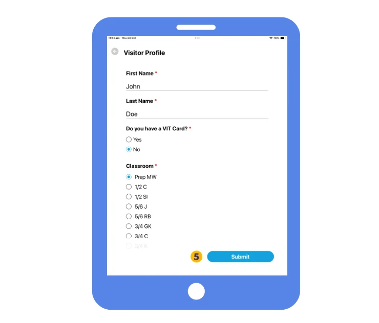 Once the Visitor Type is selected, the Form associated with that Visitor Type is listed adjacent.