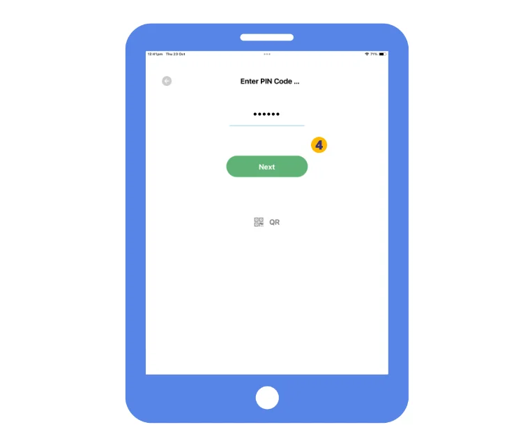 D: Phone Sign In (using their device to scan a QR code poster) …and enter a PIN Code