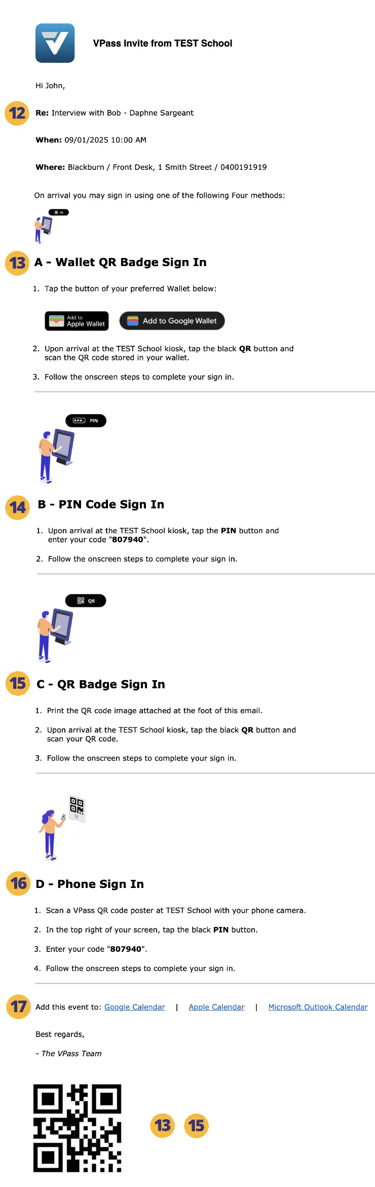 For an invitee to do an actual sign in at your premises, the procedure for each of the four methods is detailed here: