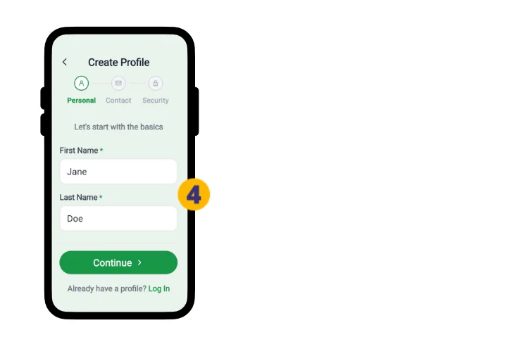 3. On the Welcome screen, swipe through the Walkthrough and tap “Create Profile”.