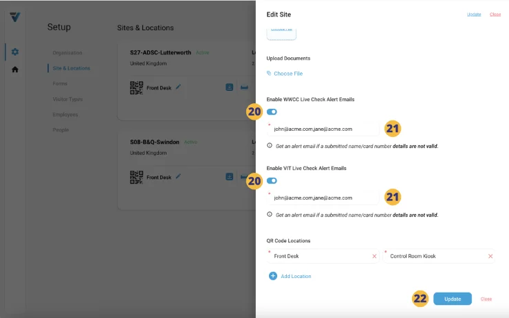 20. Toggle on either or both the Enable Live Check Alert Email switches.