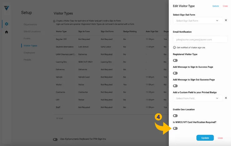 4. Scroll to near the bottom of the sidebar and toggle on the WWCC/VIT Card Verification feature.