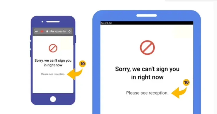 The Visitor is blocked from signing in and a message appears on the Kiosk screen… something like this: