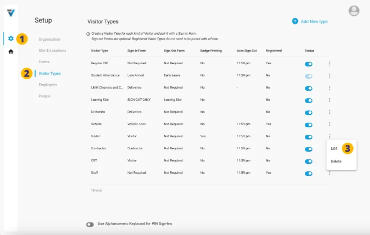 2. Select Visitor Types.