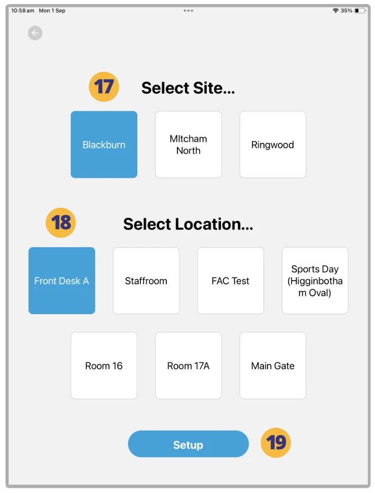 You will then be prompted to assign the Site (17) and Location (18) for this device.