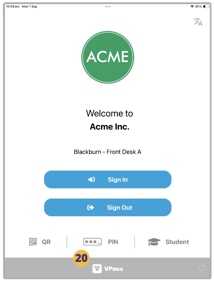 Assuming a Visitor Type has the Print feature enabled, you will be able to do your first sign in with a printed badge.