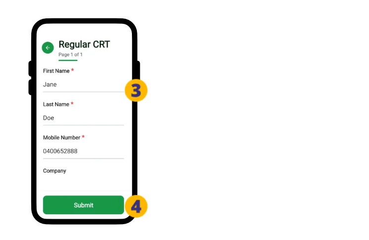 3. Select the relevant Visitor Type and touch the Next button (4).