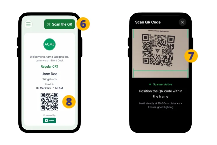 NB: Or you may scan the QR code on your virtual badge at a VPass Kiosk (8).