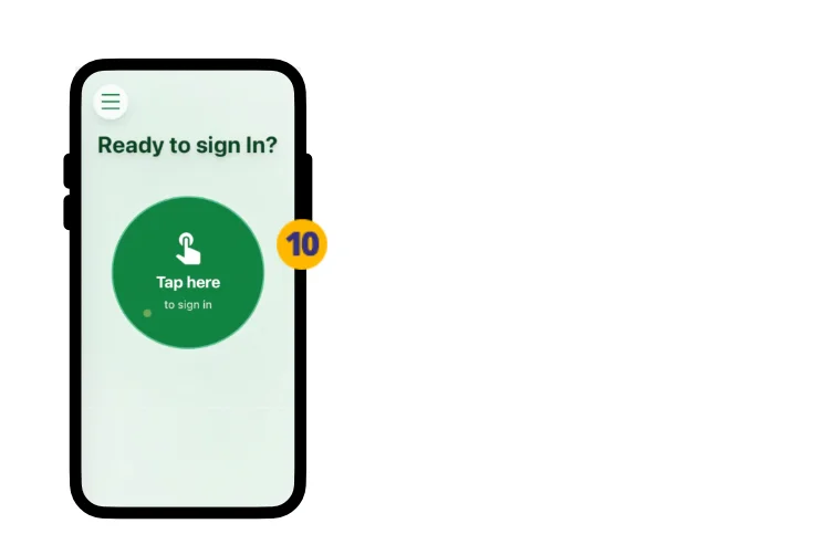 1. Open the VPass In app. The Ready to sign in page? appears… tap the green button.